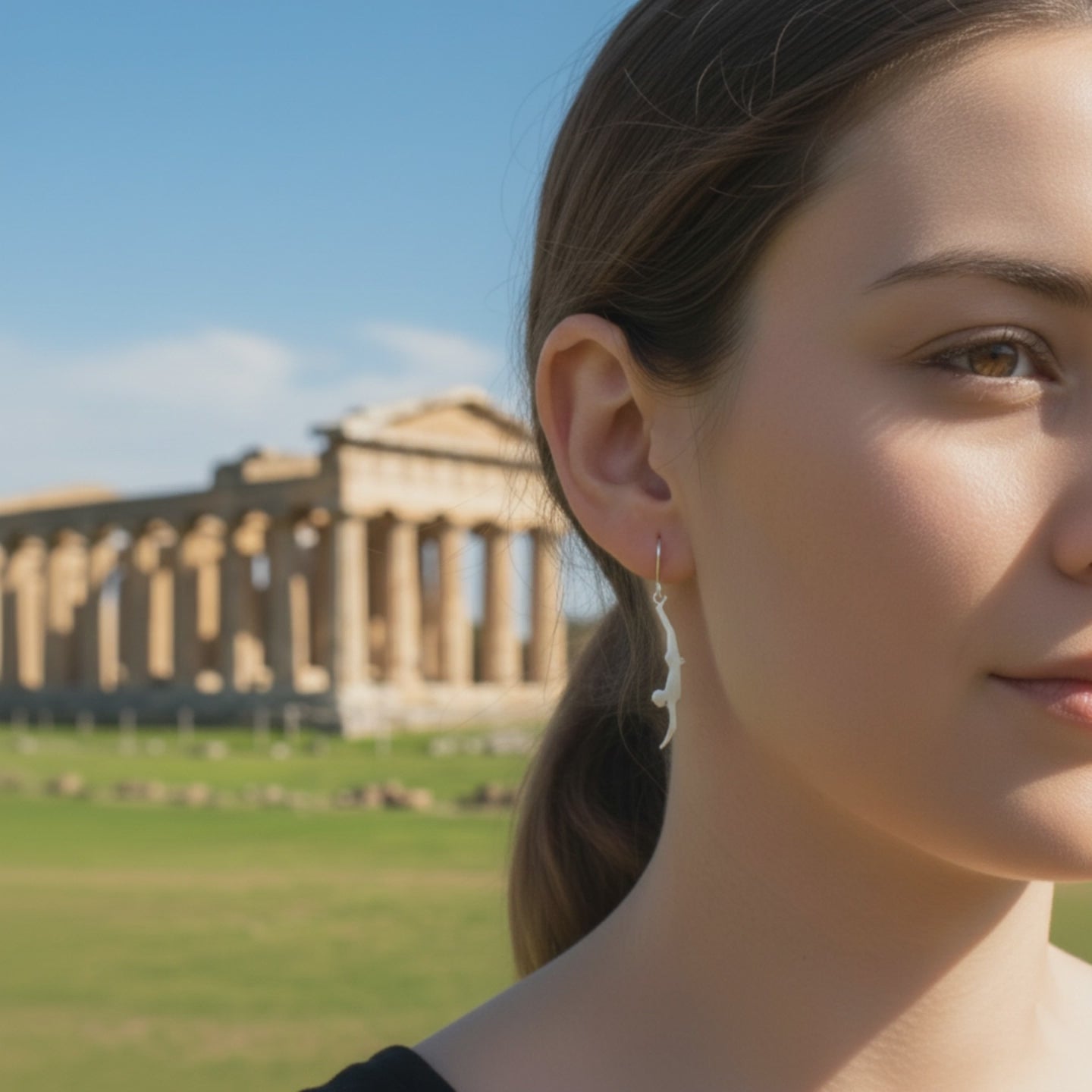Diese OhrringeKolben aus 925er Silber Ich bin derverstorben im Fresko von 480 - 470 v. Chr., heute im Archäologischen Museum von Paestum.