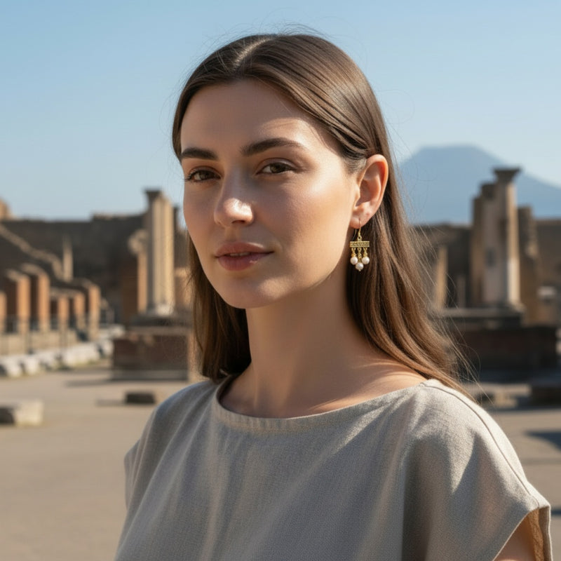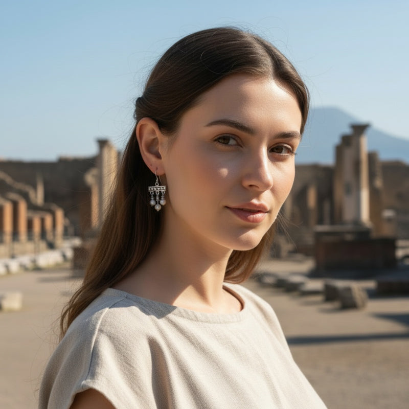 Pendientes estilo Pompeya Crotalia con piedra de lava del Vesubio