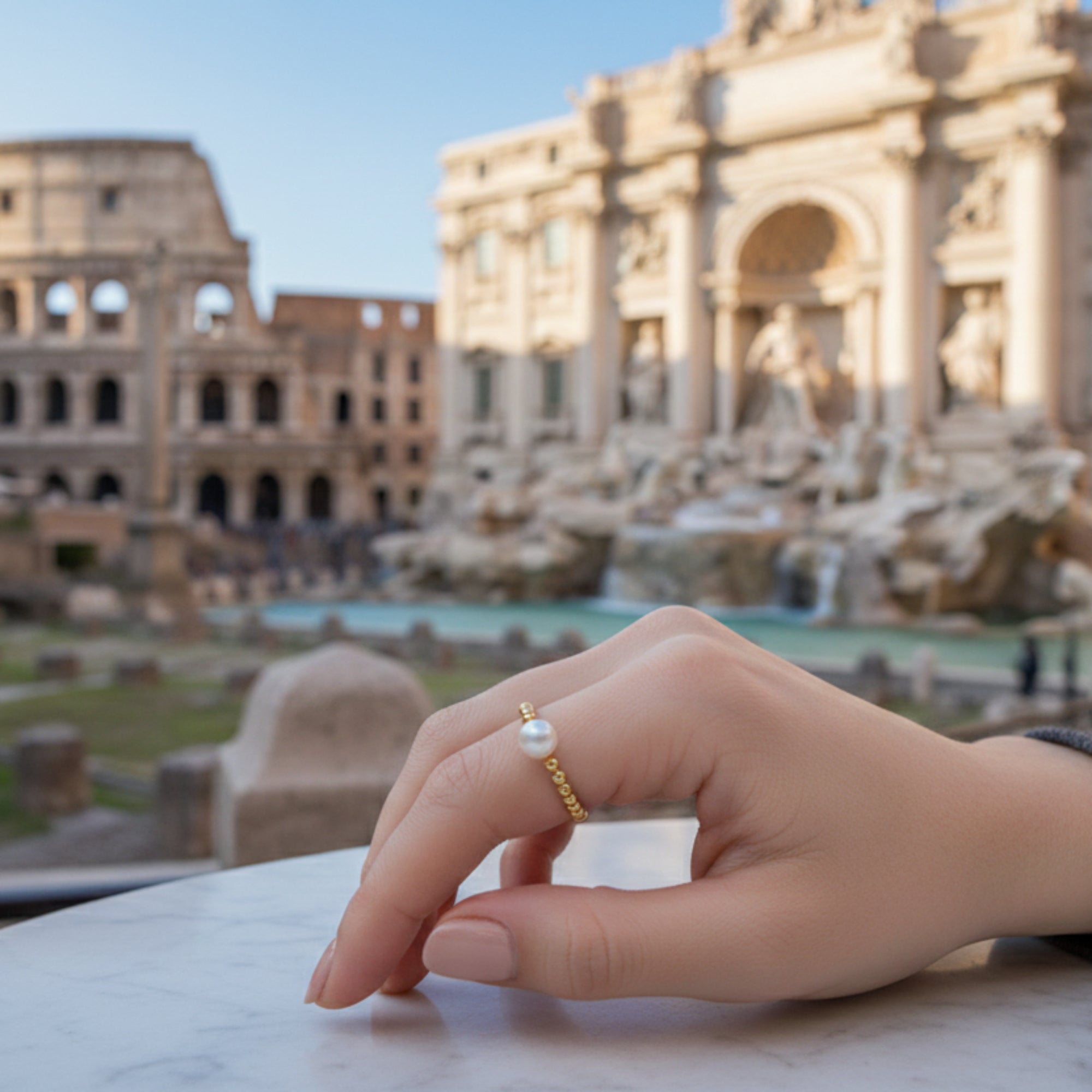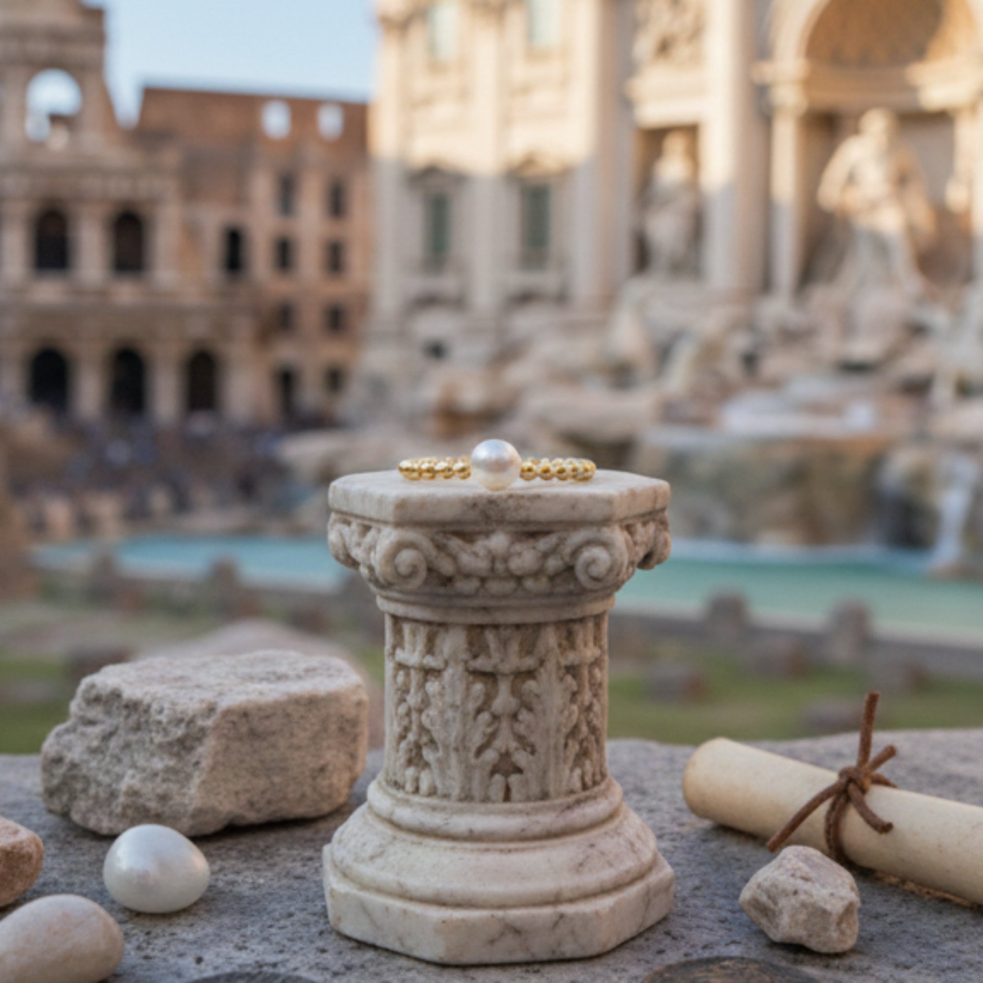 La perla central da un toque de refinamiento y lujo, inspirado en las joyas de la antigua Roma. Este anillo es perfecto para quienes buscan un accesorio sofisticado que combine el encanto histórico y el diseño moderno.