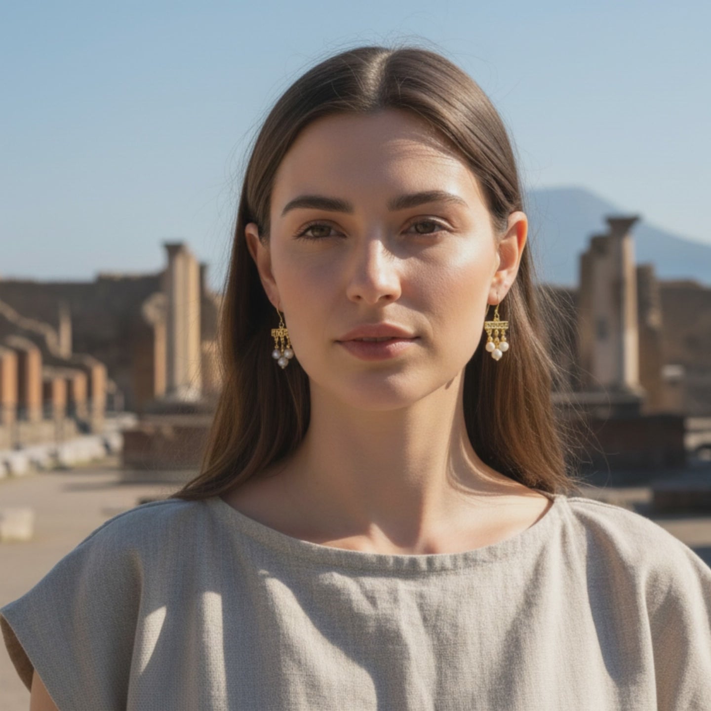 Los antiguos romanos, especialmente las mujeres de la alta sociedad, usaban aretes para demostrar su estatus y sofisticación. Las joyas con colgantes eran símbolos de riqueza y belleza, a menudo inspiradas en motivos naturales o mitológicos. Las excavaciones en Pompeya han sacado a la luz numerosas joyas similares, testimonio de la riqueza y el gusto de los antiguos pompeyanos.