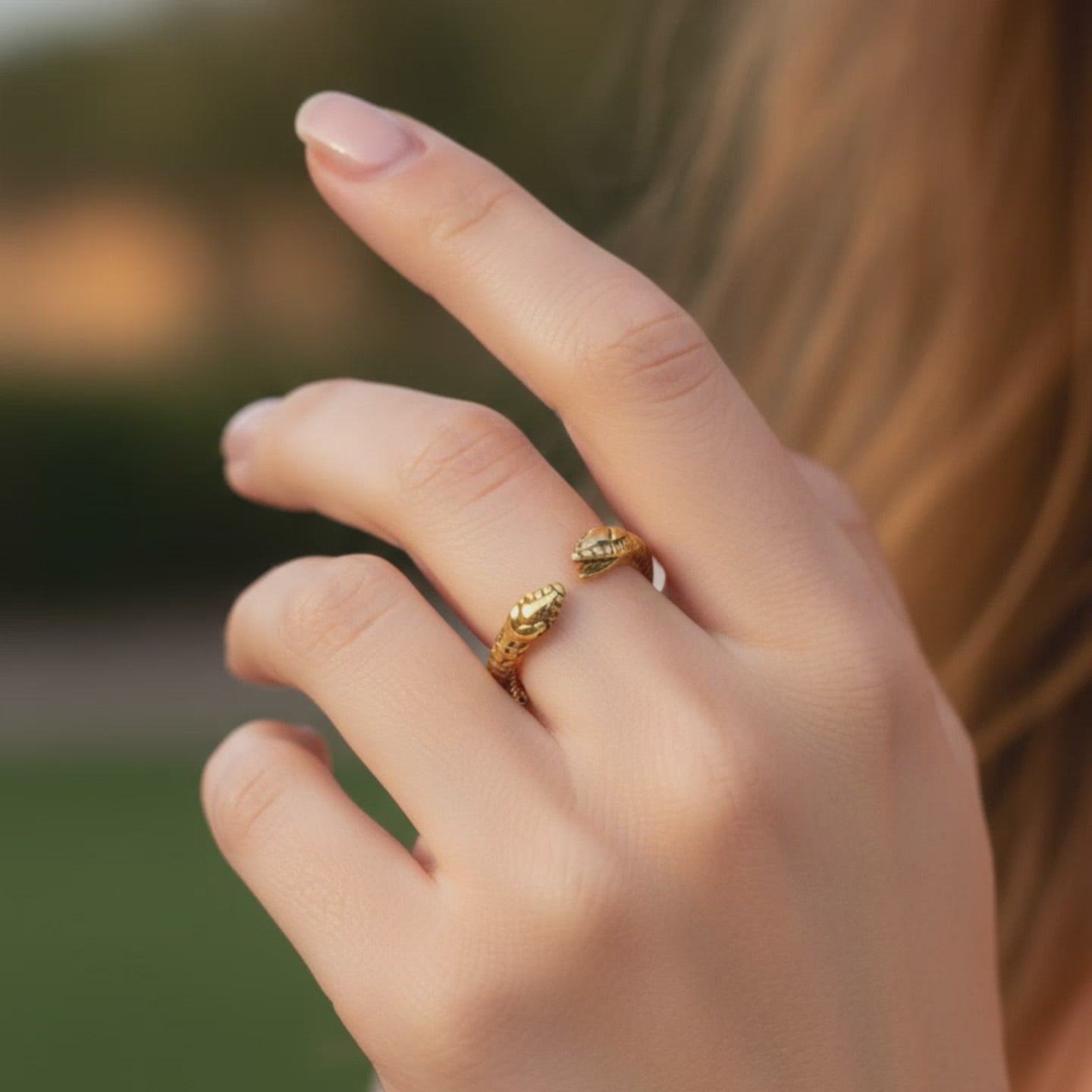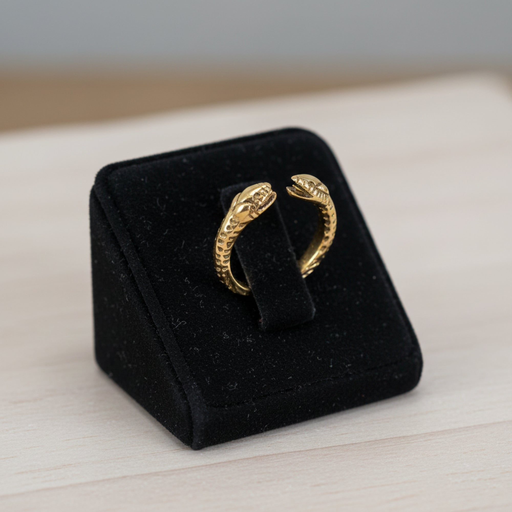 Fabriquée en argent 925, cette bague représente le puissant symbolisme du serpent, considéré comme un emblème de protection, sagesse et régénération. Les deux têtes du serpent étaient particulièrement appréciées pour représenter la dualité de la vie et de la mort, ainsi que la continuité du cycle de vie. Finement sculptés, ils ajoutent une touche de charme et de mystère au bijou.