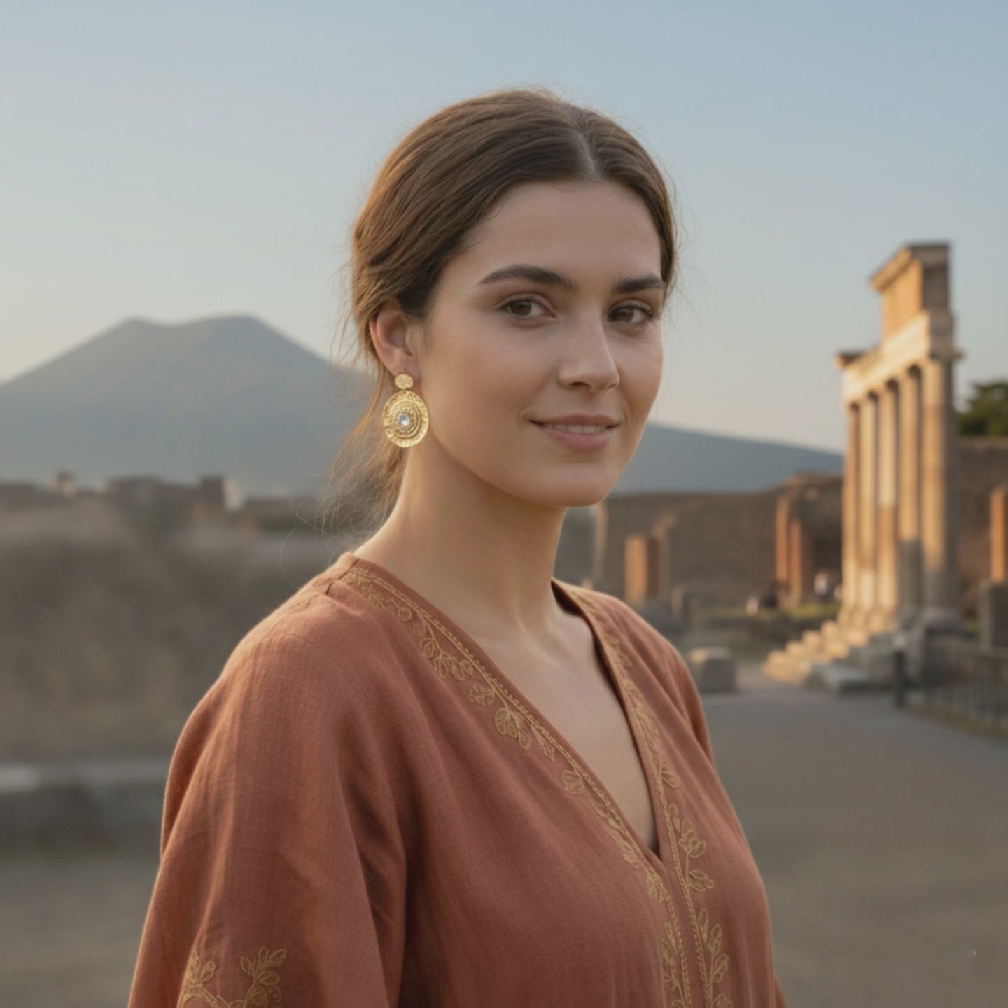 Gli orecchini in stile schiava con Swarovski sono realizzati in argento 925, placcato oro 18 KT. Sono composti da un grande cerchio centrale con una superficie lavorata, che crea un effetto di texture visivamente accattivante. Il bordo del cerchio è leggermente ondulato, conferendo movimento e dinamicità all'accessorio. Al centro di ciascun cerchio è incastonato un cristallo Swarovski trasparente.