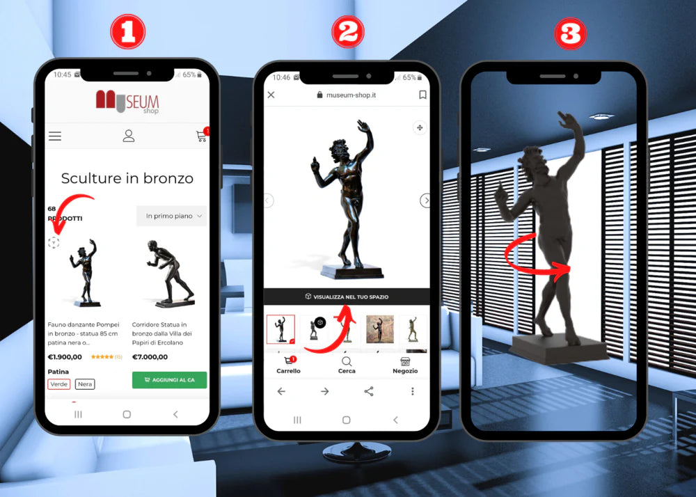 Откройте для себя новое измерение шоппинга с нашей технологией дополненной реальности. Просматривайте нашу продукцию прямо у себя дома на экране совместимого смартфона или планшета. Исследуйте детали, масштаб и элегантность наших произведений искусства, как будто они уже находятся в вашем пространстве. Сделайте ваш шоппинг уникальным и захватывающим.