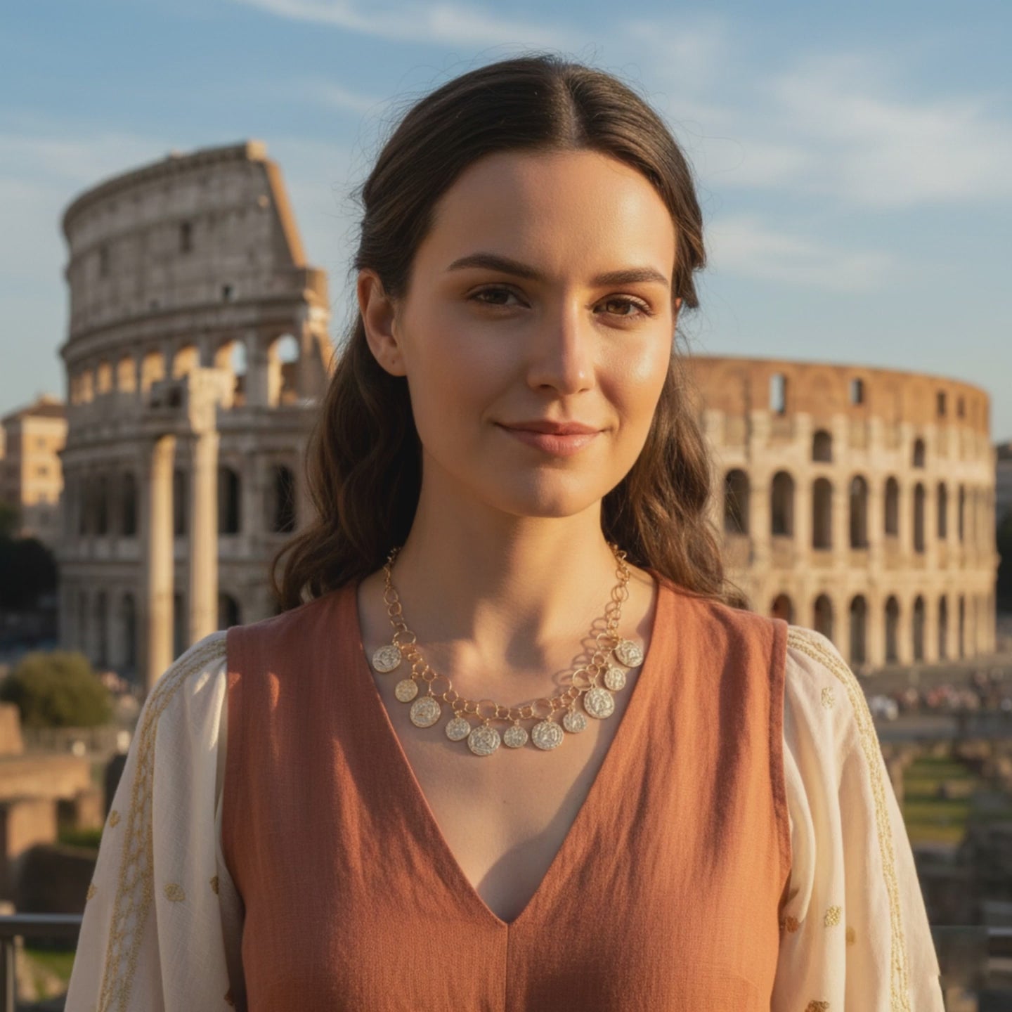 Откройте для себя изысканность и элегантность нашего ожерелья с подвесками-медалями — драгоценного камня, сочетающего в себе традиции и современность. Это колье из серебра 925 пробы с покрытием из 18-каратного золота, изготовленное вручную в Италии, состоит из серии подвесок, напоминающих древние мотивы, такие как медали, типичные для искусства и культуры Древнего Рима и Греции.